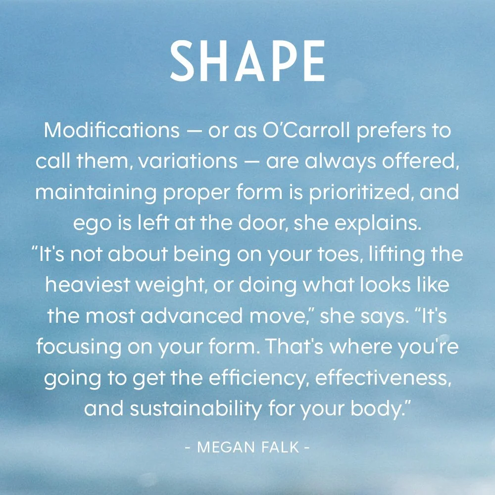 In class, expect to develop a deep understanding of your own body sensations. We describe how each movement should feel to help you build body awareness and learn what proper alignment and form should feel like. Form looks different for every body based on proportions and abilities, so we also work alongside you to find variations that work for you.